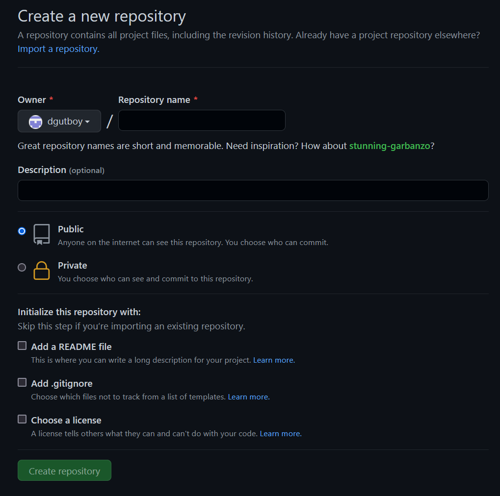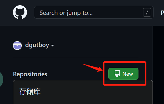 登录Github后,点击Repositories右侧的new将会跳转到创建界面