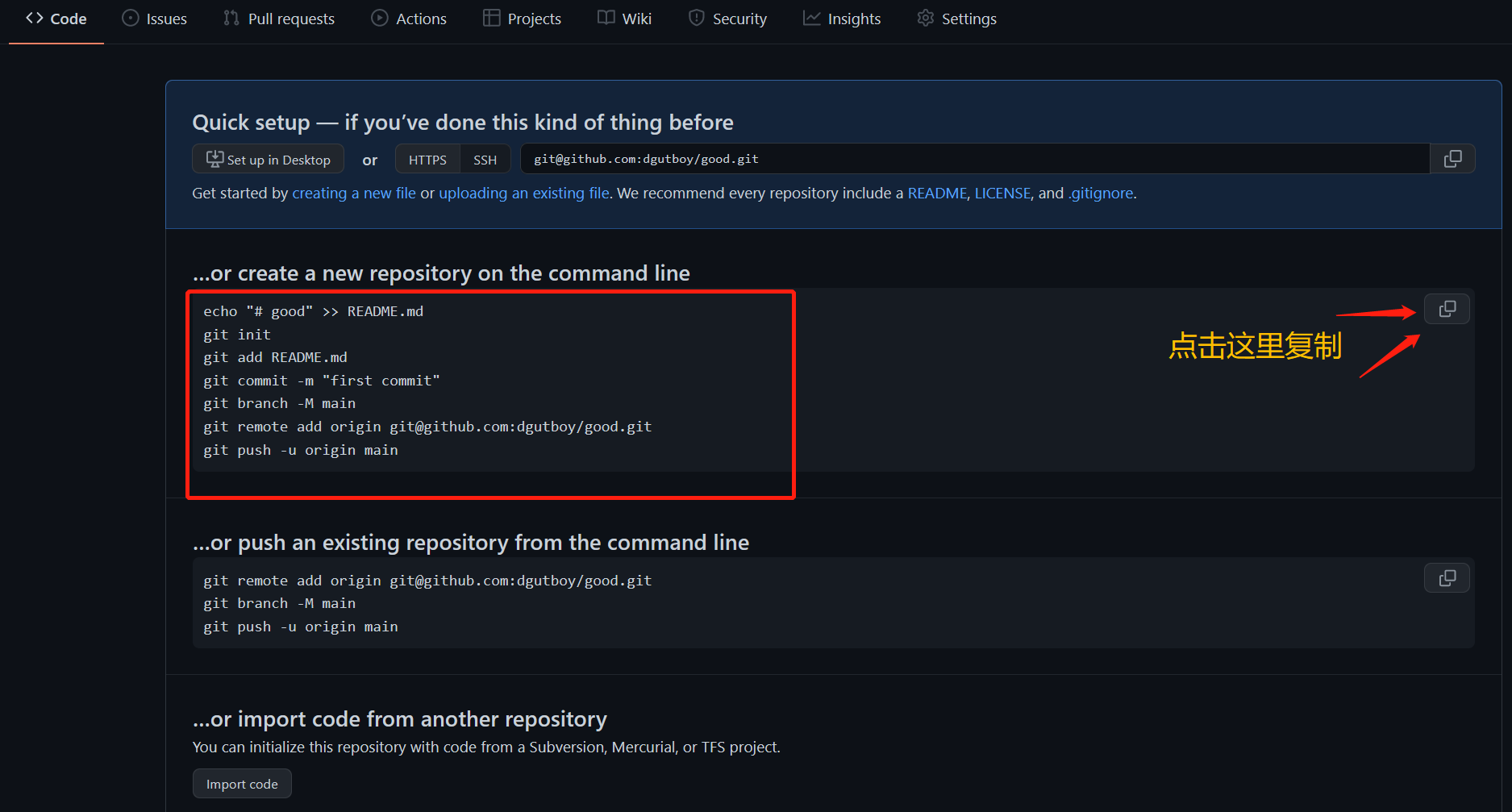 复制以下代码到git界面,回车确认即可