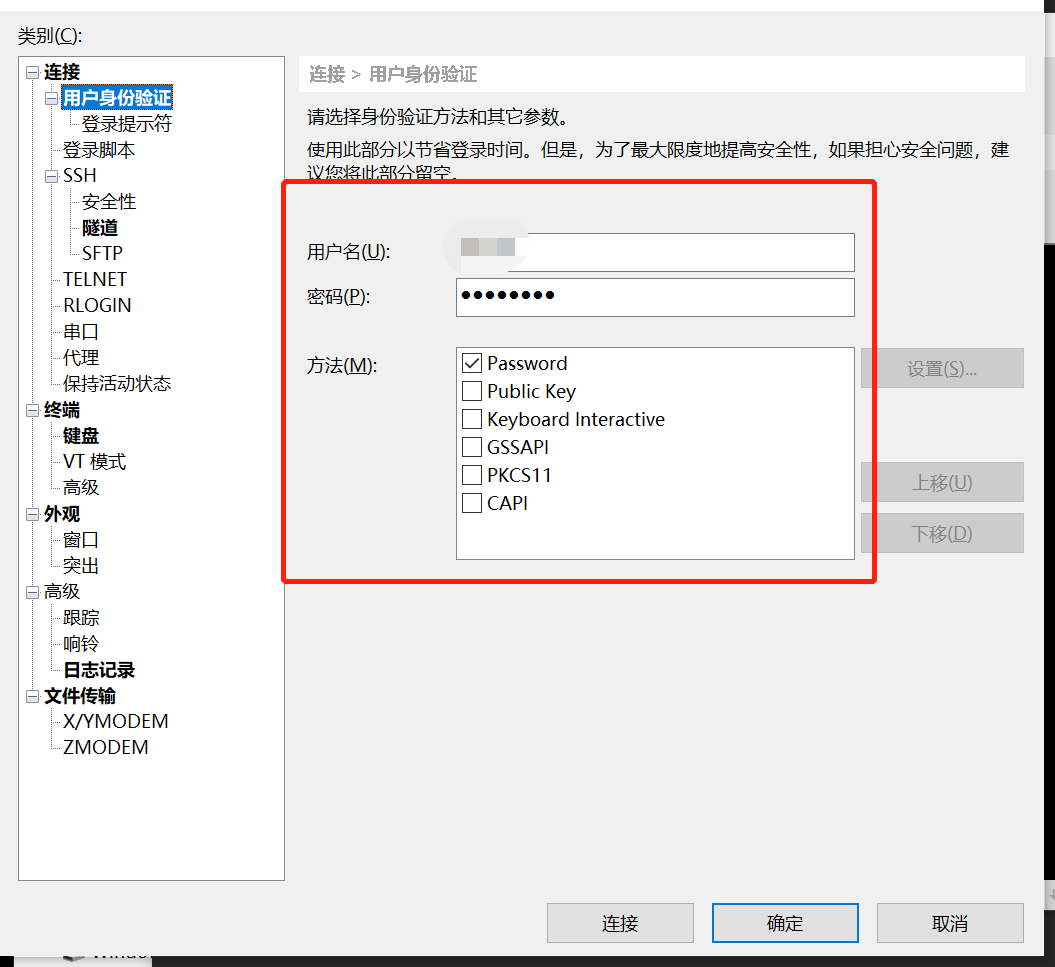 用户名以及密码填写用于登录linux主机登录的用户名和密码即可,点击连接即可完成连接